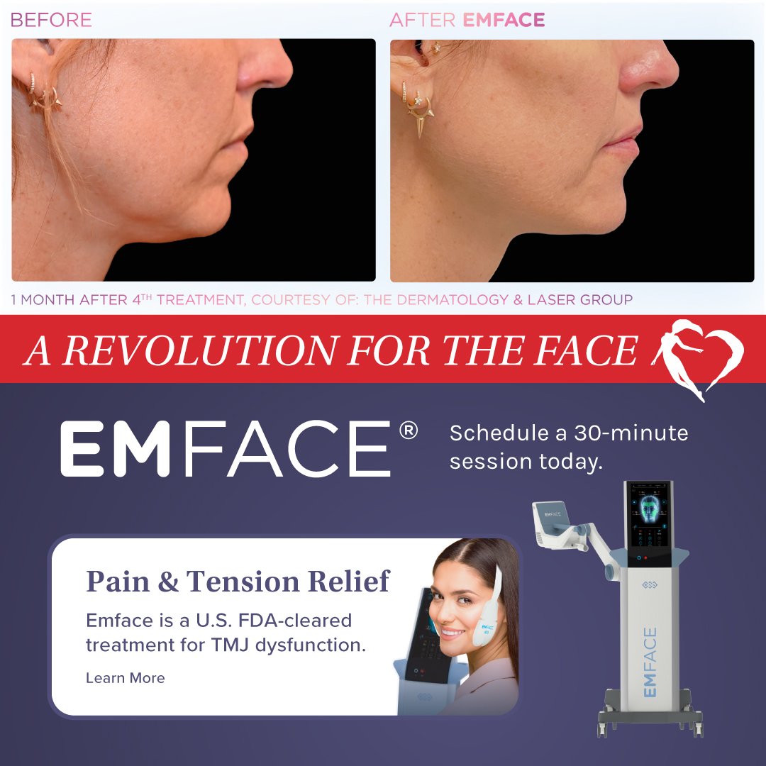 Experience a facial treatment like never before with BTL’s EmFace! Emface promotes collagen and elastin production, and heat-based stimulation contracts and restores facial muscles. Emface treatments have also helped some patients with their TMJ symptoms!